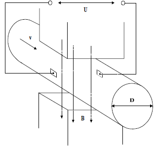 Các phép đo được dựa trên các nguyên tắc của định luật cảm ứng điện từ Faraday. Theo định luật này, khi từ thông đi qua một mạch kín thay đổi thì trong mạch đó xuất hiện một dòng điện cảm ứng. Áp dụng định luật này, các thiết bị đo lưu lượng bằng phương pháp điện từ phải được thiết kế theo nguyên tắc như hình vẽ dưới đây. Từ trường B phải được tạo ra bởi một cặp cuộn dây đặt sát với ống có đường kính D. Cặp điện cực có nhiệm vụ tiếp nhận điện áp cảm ứng U và chuyển về bộ chuyển đổi tín hiệu. Theo định luật Faraday, Giá trị của điện áp cảm ứng U phù thuộc vào từ trường B, đường kính D của ống và vận tốc chuyển động V của khối chất lỏng trong đường ống theo phương trình toán học sau đây:
