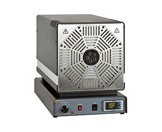 A microprocessor-based digital temperature controller makes set-point adjustments fast and easy. Both set and actual temperatures are simultaneously displayed for your convenience. A fast push-button adjustment is used for manual temperature settings. The controller is factory tuned for best performance between 300 °C and 1100 °C when the tuning function is set for automatic conformity to the set-point requirements. When using the furnace below 300 °C, controller adjustments are made to achieve high stability.