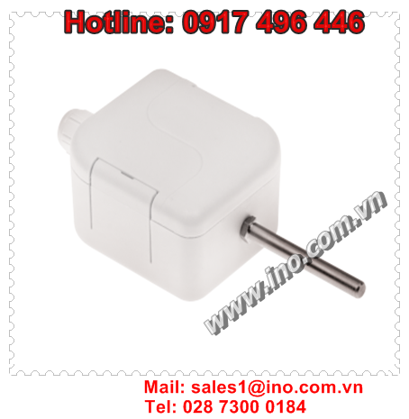 Durable industrial temperature sensor, –30°C to +70°C (–22°F to +160°F), IP65, wall mount. A Pt100 platinum temperature probe is in the tip of the protruding rod.