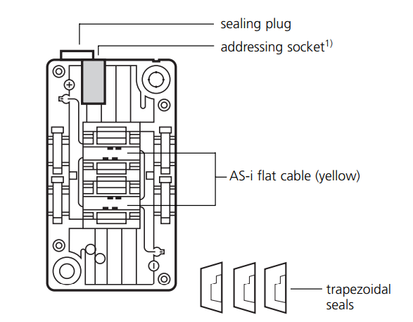 This module enables addressing of slaves in the classic design (EMS) in the wired AS-i network. If addressing takes place during installation, the ifm controller will signal "Alarm Config" because the slave is automatically removed from the network when the addressing plug is connected. After the addressing operation and removal of the addressing plug from the module the controller restarts automatically. For operating characteristics of other masters please contact the corresponding manufacturers.