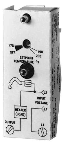 Operating Logic: Upon application of input voltage, and if the sensed temperature is below the setpoint, the internal relay will be activated, turning on the heater load.  The load will stay activated until the sensed temperature reaches setpoint value. The setpoint adjustment at the fully counter clockwise position has an OFF setting that can be used during equipment set-up to allow water to fill the vessel before allowing the heaters to be activated.