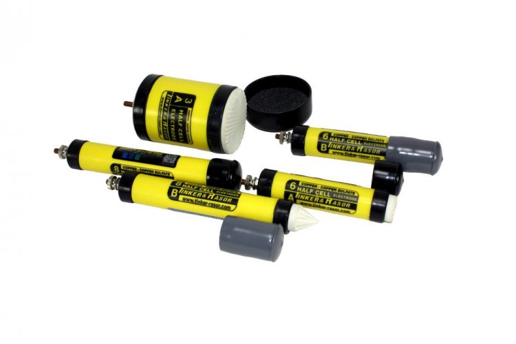 Tinker & Rasor offers a complete line of Copper-Copper Sulfate Half Cell Reference Electrodes. All Tinker & Rasor HALF CELLS are made from the most durable materials available, to withstand years of harsh, even severe field use! These fully "serviceable" Half Cells can be recharged to assure accurate readings for many years. Replacement "Tips" and supplies are available from stock.