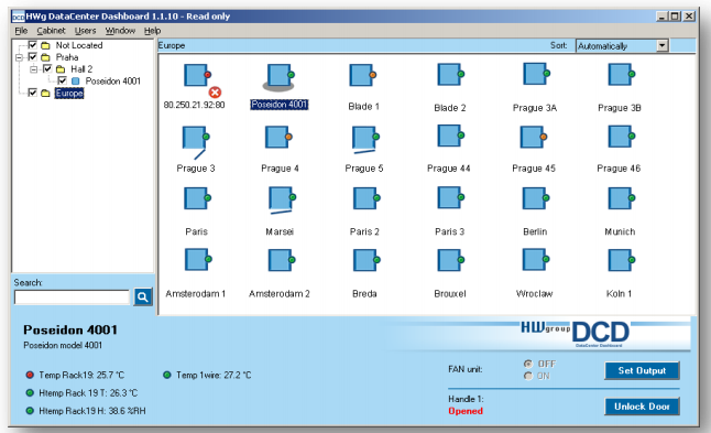 HWg – DCD (Data Center Dashboard) là một hệ thống duy nhất cho phép truy cập từ xa an toàn cho các tủ dữ liệu. HWg – DCD là ứng dụng chỉ cho phép người có thẩm quyền, trách nhiệm mở những cánh cửa phía trước hoặc phía sau của tủ dữ liệu.
