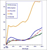 Chỉ số giá vàng tháng 02/2011 giảm 0,35% so với tháng trước; giảm 0,40% so với tháng 12/2010; tăng 36,17% so với cùng kỳ năm trước. Chỉ số giá đô la Mỹ tháng 02/2011 tăng 0,94% so với tháng trước; tăng 0,62% so với tháng 12/2010; tăng 10,11% so với cùng kỳ năm trước.