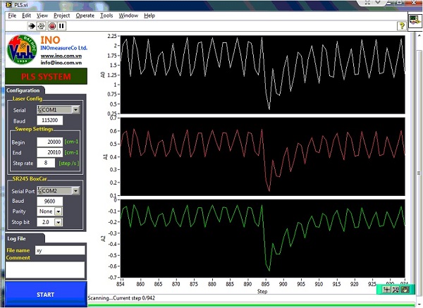 Yêu cầu của việc thiết kế phần mềm mà khách hàng đặt ra: Trong quá trình đo, máy tính ghi nhận đồng thời các tín hiệu từ đèn Holow cathode, giao thoa kế Fabry-Perot và ống nhân quang điện (thông qua 3 boxcar đã nói ở trên). Các số liệu này được ghi lại theo các “bước” của mô tơ điện điều khiển bước sóng laser. Việc điều khiển nguồn Laser quét theo bước sóng cũng được máy tính điều khiển để đồng thời với việc thu nhận tín hiệu từ các boxcar.