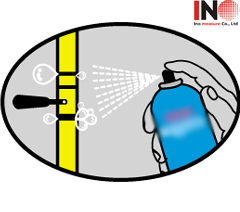 Khi cần phát hiện vị trí rò rỉ, ta xịt chất kiểm tra này vào. Nếu có vết rò rỉ, ngay lập tức các bong bóng bọt sẽ hình thành giúp cho việc phát hiện được dễ dàng và chính xác vị trí hở gas.