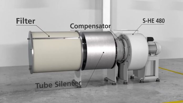 Video mô phỏng một hệ thống lọc bụi với Quạt thổi Air Blower S-HE 480 của hãng Elektror.
